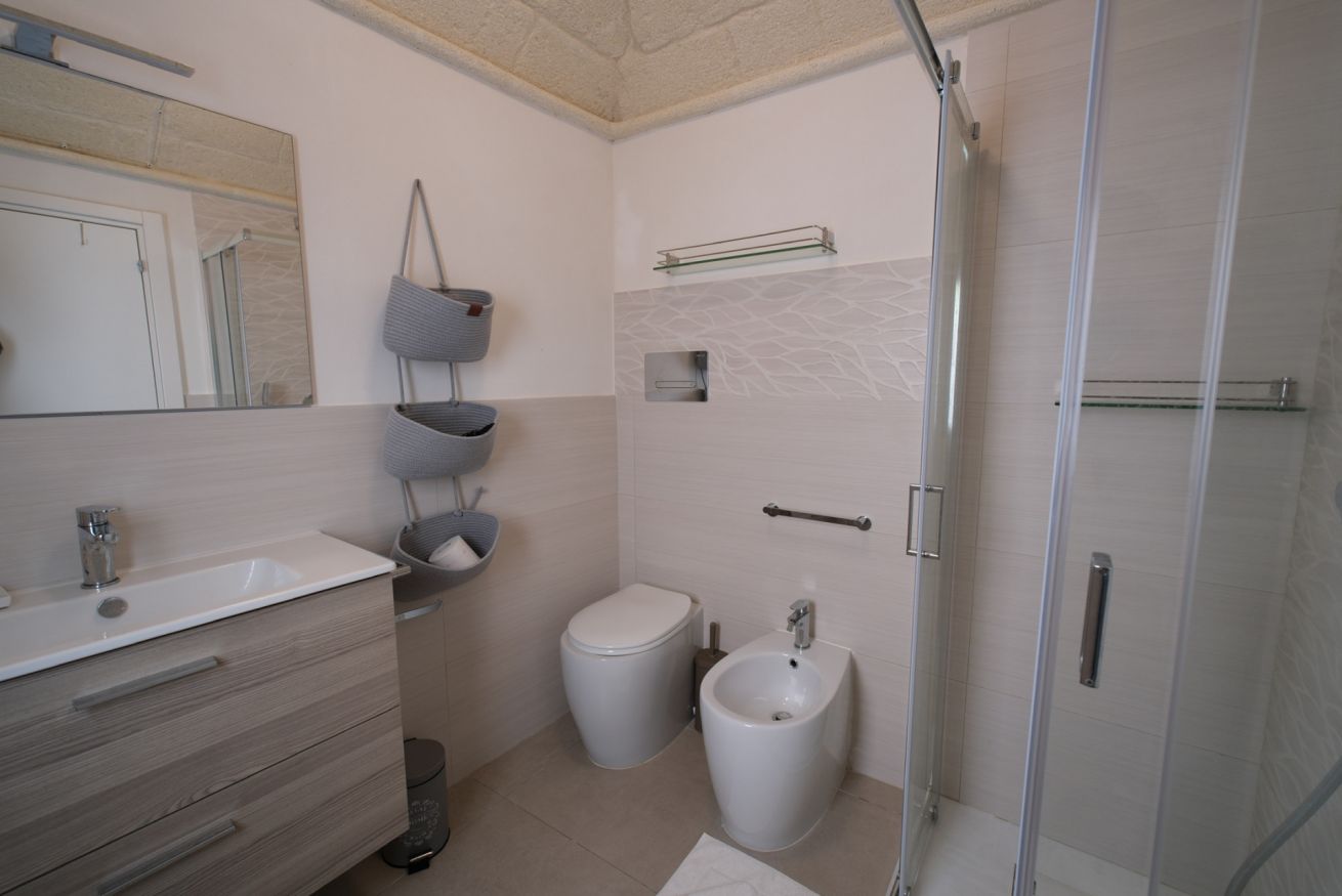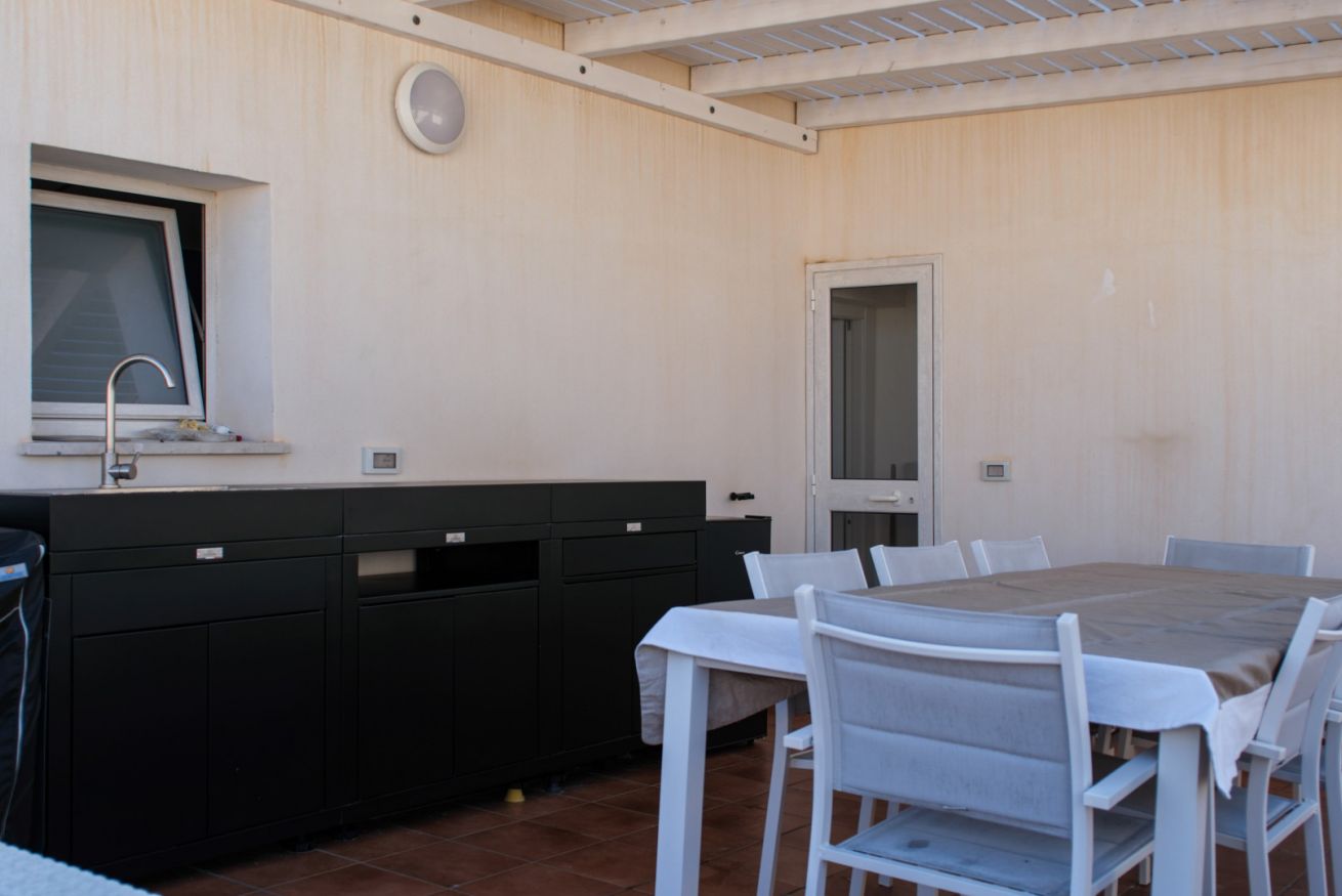 Questo alloggio unisce comfort e privacy: 2 camere da letto, 3 bagni e una pratica cucina esterna perfetta per vivere gli spazi all’aperto. Le due terrazze, luminose e riservate, regalano momenti di relax con una vista unica sull’isola.