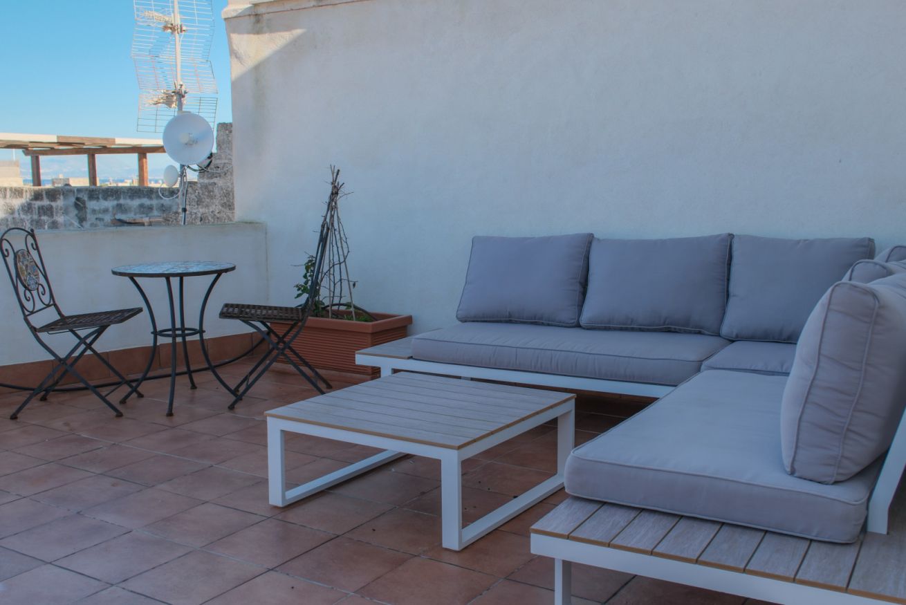 Elegante appartamento su due livelli con doppia terrazza e una splendida vista mare a pochi passi dalla piazza principale ma riparate dal rumore e dal traffico delle vie principali.